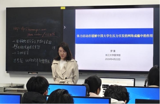 4月22日,医学部求实导师学术沙龙系列活动之“体力活动在缓解中国大学生压力引发的网络成瘾中的作用”在 14 教南 201 教室顺利举行。本次沙龙由罗曼老师主讲,部分本科生及研究生到场参与交流学习。