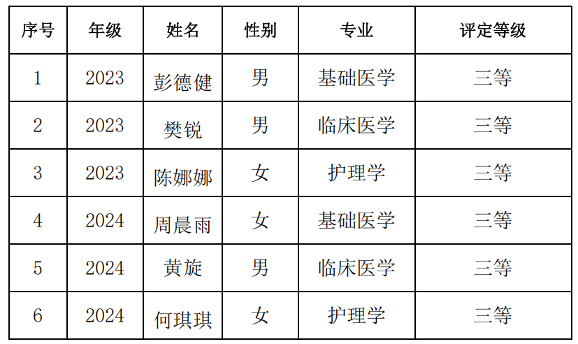 根据研究生院新增硕士研究生三等奖学金指标通知要求,经研究生本人申请、导师推荐、学部评审委员会审议通过,拟增加陈娜娜等6名同学获得长江大学2025年研究生学业奖学金,现将名单予以公示。
