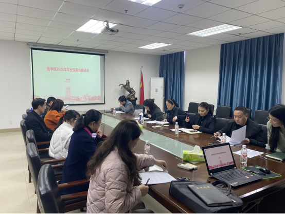 年级辅导员代阳和就业专干夏鹏两位老师先后通报了医学部 2026 届毕业生基本情况及当前摸排的就业工作现状,详细分析了当前就业形势、毕业生去向落实率、求职意向分布及存在的重点难点问题,并对下一阶段就业重点工作提出了思考和建议。各专业负责人、辅导员、班主任围绕所负责班级的就业进展、学生求职状况、存在问题及后续工作思路进行了交流发言。