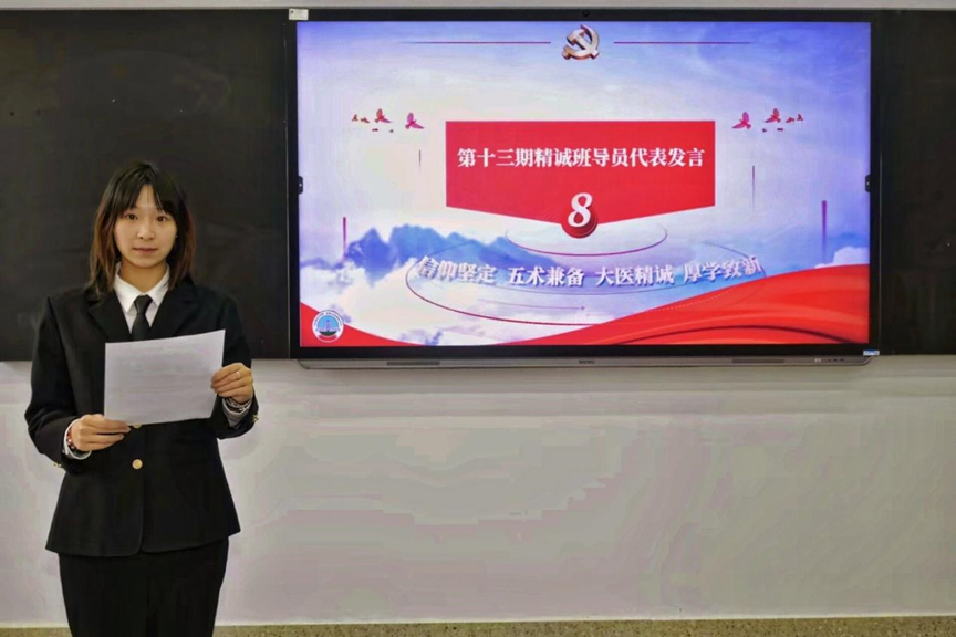 致辞中,马骐老师动情回顾与第十二期学员的共同时光,寄语大家带着精诚之志开启医学新征程,同时鼓励新学员接续努力、奋勇争先。学生导员代表汪丹迪也对新一届同学送上鼓励与期望。