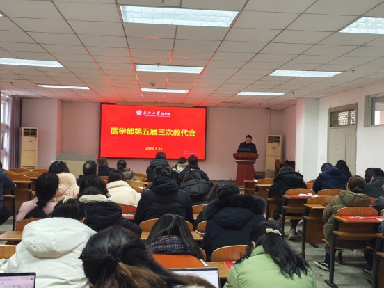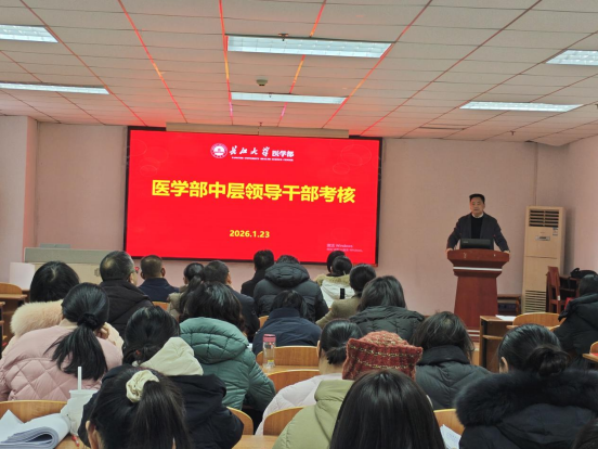 1月23日下午,医学部在14教410会议室召开教职工大会暨中层领导干部述职会。校党委常委、组织部部长李应军到会指导。