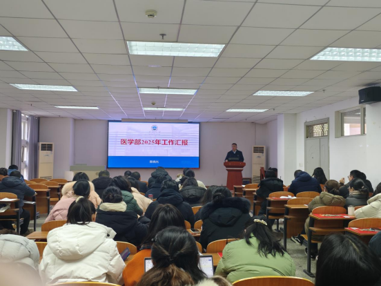 会议最后,医学部常务副部长陈晓光作医学部2025年度工作总结与2026年度工作计划报告。报告全面回顾了过去一年学部在学科建设、教育教学、科学研究、人才培养等方面取得的进展,分析了当前发展面临的形势与任务,并围绕学部未来发展规划,明确了2026年的主要工作目标与重点举措。