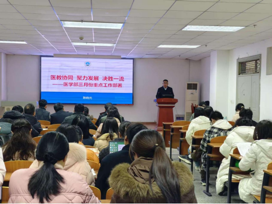 接着,医学部常务副部长陈晓光围绕 “医教协同 聚力发展 决胜一流”的主题,对学部3月份重点工作进行了详细部署。