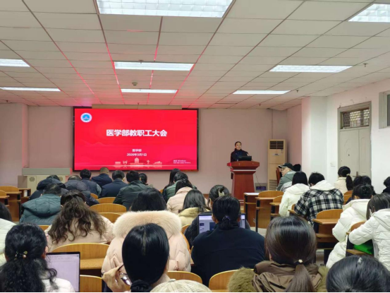 3月1日下午,医学部在14教410会议室召开教职工大会暨新学期开学重点工作部署。学部全体教职工参加会议,会议由医学部党委书记黄群俊主持。