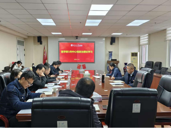 3月16日上午,医学部党委理论学习中心组在14教东502会议室召开2026年3月政治理论学习,会议由医学部党委书记黄群俊主持。